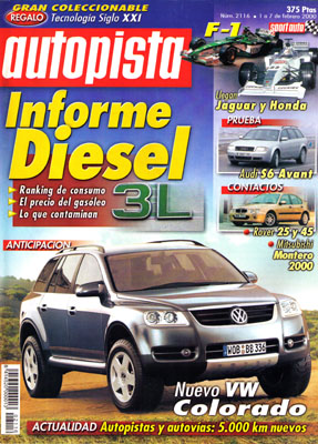 Prueba del Audi S6 Avant. Contacto: Fiat Multipla Hybrid Power, Mitsubishi Montero, Rover 25 y 45. Todo sobre el gasóleo. Anticipación: VW Colorado. El progreso y sus orígenes (XVIII), MG B. Prueba Comparativa: Kia Sportage 2.0 2p/Suzuki Jimny 1.3. Vuelve Hispano-Suiza. Entrevista con Luis Climent. Dakar-El Cairo.
