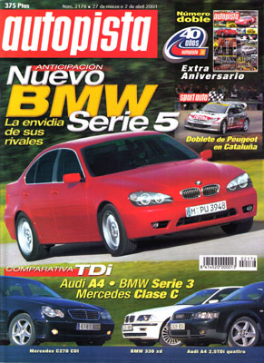 Prueba del Opel Speedster. Nueva serie 5 de BMW. Prueba Comparativa: Audi A4 2.5 TDI V6 Quattro/BMW 330 xd/Mercedes C270 CDI. Técnica: Motores Ferrari V a 65º. El motor de aire. Crash-test: Opel Agila. Prueba del Lexus LS 430. Novedad: Stola S82 Spyder. Prueba Racing: Suzuki Jimny Copa 2001. Copa del Mundo de Rallyes TT: Baja Italia. Rallye Cataluña.