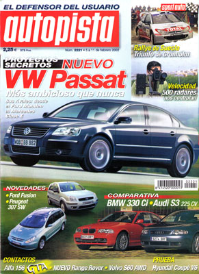 Anticipación: VW Passat. Prueba Comparativa: Audi S3/BMW 330 Ci. Prueba del Hyundai Coupé 2.7 V6. Contacto: Volvo S60 AWD DTSC, Range Rover, Alfa Romeo 156 GTA. Nuevo Peugeot 307 SW. Ford Fusion. Rallye de Suecia.