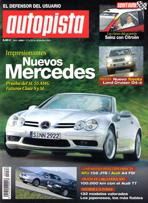 Nuevos Mercedes Clase S y SL. Prueba del Mercedes SL 55 AMG. Prueba del Toyota Land Cruiser D-4D VX. Contacto: Opel Hydrogen3. Informe: los coches más fiables. Prueba de larga duración del Audi TT Roadster 1.8T Quattro. Prueba Comparativa: Alfa Romeo 156 JTS/Audi A4 FSI. Contacto: Daewoo Evanda CDX. XIX Salón Auto Retro de Barcelona. Dakar 2003. Equipo de rallyes Citroën 2003.
