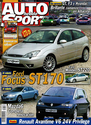Al volante del Ford Focus ST170 y Mondeo ST220. Al volante del Mazda 6. Prueba del Renault Avantime V6 24V Privilege. Prueba Comparativa: Audi A4 3.0 Avant Tiptronic Quattro/BMW 330i Touring/Lexus IS 300 Sportcross. Pruebas en Albacete. Todas las pruebas nacionales. 12 Horas del Jarama Histórico. Entrevista a Tomás Saldaña.