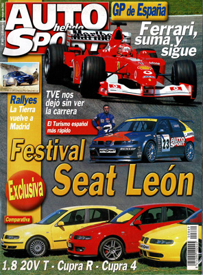 Nuevo VW Touareg. Al volante del Mercedes CLK. Al volante del Renault Avantime V6 automático y 2.0 Turbo. Gran Prueba Comparativa: Seat León Cupra R/León Cupra 4/León 1.8 20V T. Prueba del Sea León Supercopa. Salón de Vigo. G.P. de España de F1. Todas las pruebas regionales.