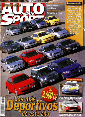 Al volante del Citroën C8. Prueba del Lancia Lybra 2.4 JTD SW. Los deportivos de 2002: Mitsubishi Evolution VII, Subaru Impreza WRX STi, Alfa Romeo 156 GTA, Audi Cabrio 3.0, Mercedes CLK 320, Opel Vectra GTS V6, Honda Civic Type R, Toyota Corolla T-Sport, Seat León Sport FR 1.8T 4, Fiat Stilo Abarth, Ford Focus ST 170, Hyundai Coupé V6, Mazda 6 2.3 16v Sportive, Mini Cooper S, MG TF 135. Cadillac cumple 100 años. G.P. de Alemania de F1. Michael Schumacher-Juan Manuel Fangio, genio contra figura. Rally de Cantabria. Prueba del Hyundai Accent WRC Evo3. Prueba del Fiat Punto Super 1600.