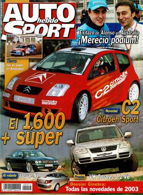Al volante del Jaguar XJ Type R. Prueba del Audi TT 1.8 T Tiptronic. Prueba del VW Touareg 3.2 V6. Salón de Ginebra. Tests de Sainz en Cataluña. Carreras sobre hielo en Andorra. Marc Gené, con la WS by Nissan. Clásicos: nuevo Campeonato Nacional de Velocidad. Todas las pruebas regionales.