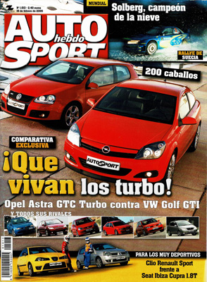 Prueba Comparativa: Opel Astra GTC Turbo/VW Golf GTi. Prueba Comparativa: Renault Clio RS/Seat Ibiza Cupra 1.8T. Novedades: Ferrari F430 Spider, BMW 130i, Ford Fiesta Vodafone, Toyota Yaris Expo, Citroën C6. Al volante del Hyundai Coupé 2005. Rally de Suecia. 24 Horas de Daytona. Trazado urbano de Bilbao. Prueba Racing: Renault Clio RS S1600.