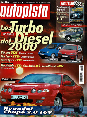 Prueba del Fiat Punto 1.9 JTD. Prueba del VW Lupo 1.4 TDi. Prueba del Lancia Lybra 2.4 JTD. Prueba del Hyundai Coupé 2.0. Prueba Comparativa: Fiat Multipla 1.9 JTD/Opel Zafira 2.0 Di/Renault Scénic 1.9 dTi. El mercado del automóvil en el año 2000. Salón de Moscú. Novedades: Karmann Coupé RH y Zender Thirty 7. Gran Premio de Europa de F1. Racing&Festival y GT en el Jarama. Rallye Príncipe de Asturias. Copa Citroën Saxo en Jerez. Formula Renault Elf-Campus. Petit Le Mans.