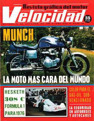 Editorial: A Polo Villaamil. Seat unifica sus producciones. Gama Chevrolet '76. Madera de fresno para los Morgan. Prueba de la Munch 1200 TTS. Presentación del Leyland Princess. Precio de los vehículos nuevos. El 131 de rallyes, a punto. En marcha el Tyrrell de 6 ruedas. Pruebas en el Jarama. F1 para 1976: el Hesketh 308-c con suspensiones de goma. Fiat Zero, primer gran serie italiano. Consultorio del lector.