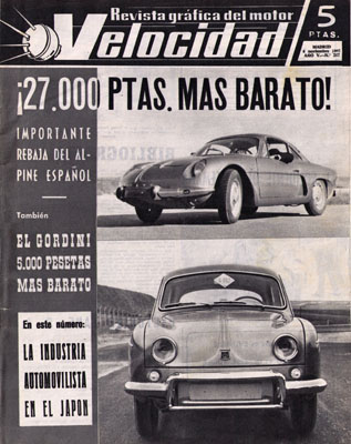 El Alpine español baja de precio. Salón de Tokio. Fiat, de moda en el mundo. Craig Breedlove consigue un nuevo record de velocidad sobre tierra. Drag, monstruo de la aceleración. 2 Días Internacionales de Madrid. El freno en los vehículos de carga. Glas Coupé 2600 V8. Campeones motociclistas de 1965. Consultorio del lector.