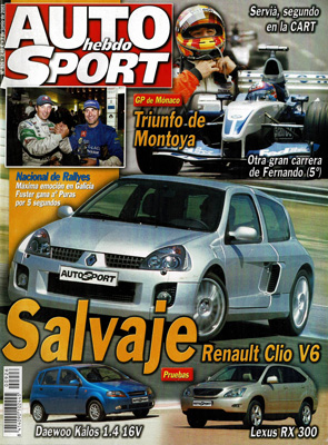 Prueba del Renault Clio V6. Prueba del Lexus RX 300. Prueba del BMW 330 Cd. Prueba del Daewoo Kalos 1.4 16V. Al volante del Hyundai XG 350. G.P. de Mónaco de F1. Nacional de F3 y Copa Hyndai en Jerez. Rallye Rías Bajas. Rallye de Grecia.
