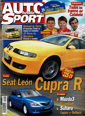 Prueba del Seat Leon Cupra R 225. Prueba del VW Passat V6 TDi 4Motion. Prueba del Audi Allroad V8 4.2. Al volante del Subaru Legacy y Outback, Mazda 3 y Toyota Land Cruiser D-4D y V6. Entrevista con Marcus Gronholm. Hyundai deja el Mundial. Tests de Carlos Sainz en Cataluña. Preavance del Rallye de Cataluña. Rallye de Tierra en Cantabria. 24 Horas de Barcelona. Nacional de Autocross en Lleida. Avance del G.P. de EE.UU.. Avance Raid de Cuenca.