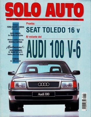Prueba del Seat Toledo 16v. Gama Seat Toledo. Nuevo Audi 100. Prueba del Ford Escort Cabrio 1.6 EFI. Nuevos Audi Cabrio. Contacto con los nuevos Renault Espace. Entrevista con John Barnard. Rallye de Tierra de Alicante. Carlos Sainz no podrá descansar. Turismos y monoplazas en Jerez. Juan Manuel Fangio.