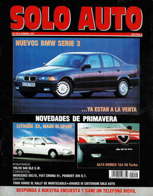 Prototipo Maserati Chubasco. Nuevo Citroën ZX. Contacto con el Mercedes Delta B 300: un 300 CE con frontal de SL. Contacto con el Peugeot 205 D Turbo. Nuevos BMW Serie 3. Fiat Croma '91. Prueba del Volvo 940 GLE Station Wagon. Contacto con el Alfa Romeo 164 V6 Turbo. Rallye de Montecarlo. Javier del Arco entrevista a Pedro Martínez de la Rosa. Juan Fernández, manifestaciones recogidas por Javier del Arco. Calendario automovilístico 1991. Entrevista a la escudería Gamace MC Competición. Entrevista a Jesús Puras. La increíble historia de los hermanos Schlumpf.
