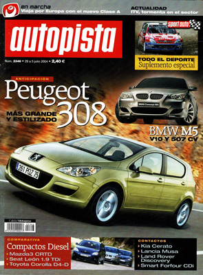 Nuevo BMW M5. Contactos: Kia Cerato, Smart Forfour dci, Ford Mondeo 2.2 TDCi, Lancia Musa y Land Rover Discovery. Anticipación: Peugeot 308. Prueba Comparativa: Mazda 3 1.6 CRTD/Seat León TDI/Toyota Corolla 2.0 D4-D. Prueba Comparativa: Audi A6 3.2 FSI Tiptronic/Volvo S80 T6 Summun. Pruebas EuroNCAP 2004. Rallye de Turquía.