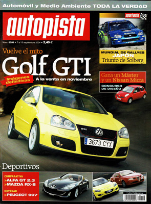 Nuevo Volkswagen Golf GTi y Peugeot 907. Contactos: Mercedes SLK y Toyota Prius GT. Prueba Comparativa: Fiat Idea 1.4 16v/Mitsubishi Colt 1.5. Prueba Comparativa: Alfa Romeo GT 3.2 V6/Mazda RX-8. Los coches viejos sí contaminan.