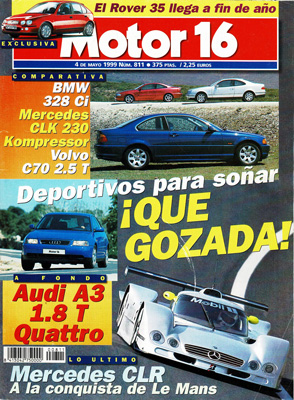 Prueba del Audi A3 1.8 T Quattro. Prueba Comparativa: BMW 328 Ci/Mercedes CLK Kompressor/Volvo C70 2.5 T. Fuera de serie: Pegaso Thrill. Rallye de Clásicos de Marruecos. Rallye de España. Mercedes CLR. Día Internacional Renault. Racing&Festival y Campeonato GT.