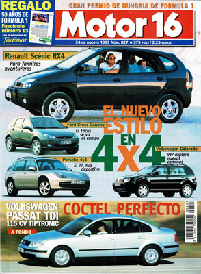 Prueba del Volkswagen Passat 1.9 TDi 115 CV Tiptronic. Prueba de la gama Toyota Corolla. Novedades: Renault Scénic RX4, Ford Focus Cross Country, Porsche 4x4 y Volkswagen Colorado. Concentración Ferrari en Jerez. G.P. de Hungría de F1.