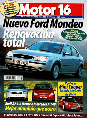 Prueba Comparativa: Audi A2 1.4/Mercedes A 140. Al volante: Peugeot 607, nueva gama Renault Espace, nuevo Audi A3. Novedades: nuevo Mini Cooper, Audi Sport. Magazín: a las fuentes del Nigel en barco, coche y bici de montaña. El automóvil y la contaminación acústica. Campeonato de España GT. G.P. de Italia de F1. Rallye de Chipre. Rallye de La Coruña.