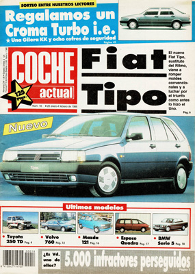 Nuevo Fiat Tipo. Salón de Bruselas. Nuevo Renault Espace Quadra. Prueba Comparativa: Fiat Uno Brio/Seat Ibiza Street. Emisoras de radio para la circulación. Entrevista a la Eurodiputada Carmen Llorca. Prueba de la Ford Transit 2.5 Diesel. Rallye de Montecarlo.