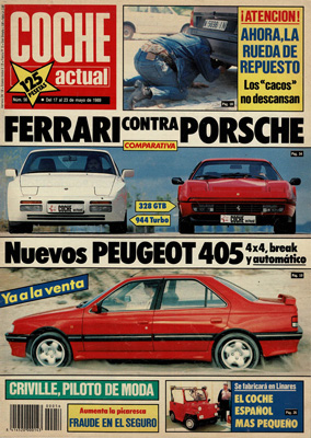 42 Hispano-Suiza juntos en el Ritz. Prueba Comparativa: Peugeot 205 Green/Peugeot 309 Green. Pancho City, utilitario "made in Spain". Entrevista a Pérez-Sala y Minardi. Prueba Comparativa: Ferrari 328 GTB/Porsche 944 Turbo. Entrevista con Alex Crivillé. El coche de Marian Conde.