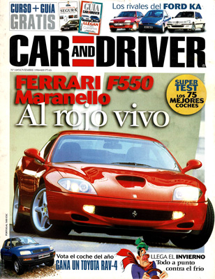 Salón de París. Contactos: Kis Pride 1.3 3p, Nissan Primera, Hyundai Sonata 2.0 16V GLS, Peugeot 406 Break, Renault Mégane Scénic, Fiat Multipla, Toyota Picnic, VW Sharan VR6, Fiat Bravo/Brava TD, Suzuki Vitara TD. Prueba Comparativa: Ford Ka 1.3 Full Equipment/Citroën Saxo 1.1 SX/Puegeot 106 1.1 XR. Prueba Comparativa de los 75 mejores coches (por segmentos). El automóvil en los dibujantes de viñetas. Prueba del Ferrari F550 Maranello. Rutas 4x4: de Vivar a Olocau del Rey. Prueba de la Aprilia Leonardo. Los taxis del pasado. G.P. de Japón de F1. El coche de Salvador Serviá.