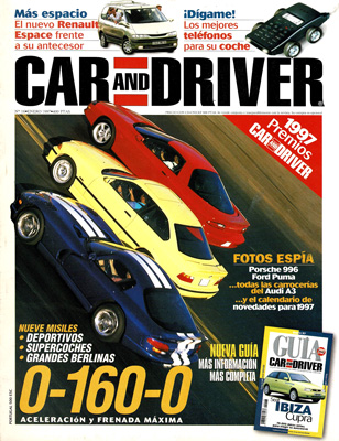 II Edición Premios Car and Driver. Contactos: Seat Ibiza Cupra, Renault Safrane, Alfa Romeo 145/146 Twin Spark, Alfa Romeo GTV 3.0 V6 24v, Volvo S70 y V70, Jeep Wrangler, Rolls-Royce Silver Spur. Prueba Comparativa: BMW 540i/Maserati Quattroporte V8. Renault Espace, futuro y pasado. Viaje a Nueva Zelanda. Telefonía móvil en el coche. Saab 900 Tagadella Challenge. Aceleración y frenada máxima de los coches superdeportivos y grandes berlinas. Viaje a Bossot, el pueblo del rafting. Prueba de la Harley Davidson FLSTS Heritage Springer. La colección de René Mauriès. El coche de Luis Moya.