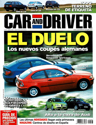 Nuevo BMW Serie 3 Compact. Prueba Comparativa: BMW 325ti Compact/Mercedes Sportcoupé C230 K. Contactos: Citroën C5, Renault Laguna, Opel Astra Cabrio, Porsche 911 GT2, Chrysler Voyager. Prueba Comparativa: Alfa Romeo 147 2.0 TS Distinctive Selespeed/Audi A3 1.8T Ambition. Prueba Comparativa: Mercedes ML 320/Lexus RX 300/BMW X5 3.0i. Centros de Diseño en Barcelona. Prueba del Caterham Super 7 Courtenay Turbo. A La Mancha en un Land Rover Freelander Td4. Prueba de la Honda Transalp XL650V. Salón Retromóvil de Madrid. Nuevas tecnologías: ¿peligro al volante? Consultorio. G.P. de Australia de F1. Rallye de Portugal. Rallye Mediterráneo.