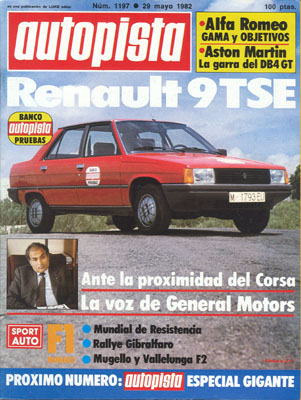 En portada el Renault 9 TSE, asi como en el interior una prueba del mismo firmada por Arturo Andres.Como novedades el MG MEtro y la nueva gama de Alfa Romeo, asi como numerosas pruebas deportivas y las tipicas secciones.