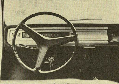 El salpicadero continúa en la línea de los modelos 1000, con un volante de tres radios y un aro muy adaptable a las manos. Los mandos están dispuestos en el volante y en la parrilla, con los señalizadores de luces en la barra de dirección de nuevo diseño y del estilo del modelo 1200 Special.