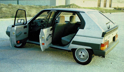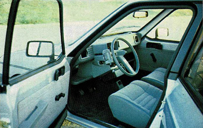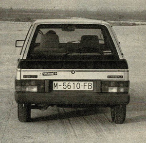 Para comenzar, habrá que referirse a la buena presentación que ofrece con ese color gris perla, rojo Valleíunga o negro, los tres muy apropiados para un coche de vocación deportiva. Completan esta fisonomía las aparentes llantas de aleación ligera, el agresivo frontal, bajo el cual un leve spoiler mejora las apariencias, lo mismo que el breve alerón trasero, la ancha banda lateral en material plástico y demás embellecedores adoptados. Pero también es de resaltar el carácter a la vez utilitario que se le ha dado a este coche, de un lado por sus cinco puertas y de otro por la posibilidad de abatir los asientos posteriores, independientemente uno del otro, por si se quiere aumentar el espacio para el equipaje, dando la posibilidad de que viaje atrás una persona y, lógicamente, dar si se desea la posibilidad también de poder destinar toda la parte posterior al equipaje, cuando no viaje nadie atrás y se abatan los dos asientos posteriores.