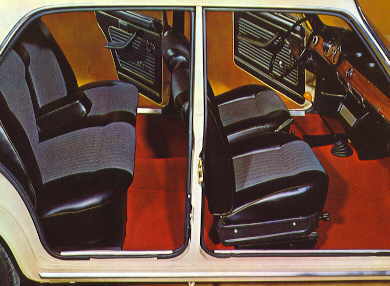 A diferencia con el modelo italiano, se montó en España una solución original y más estética realmente. En el interior todos los detalles han sido cuidados, y así vemos una tapicería confortable, a la vez que útil, a base de imitación de cuero en los laterales y paño en la zona central, que unida al excelente confort de las butacas delanteras, regulabas en profundidad y en la altura del respaldo y a los cómodos apoya-brazos laterales nos da una favorable impresión respecto al confort del 1430.