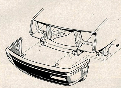 Una radiografía de modelo nos muestra la formación de una caja con las aristas reforzadas por largueros. Los inferiores son los de la base del monocasco, el frontal en forma de travesaño en la parte superior, de un lado a otro, y por la parte de atrás con el reforzamiento que supone la embutición de la chapa de separación con el habitáculo. Lateralmente también hay refuerzos en la parte superior de las aletas, cerrándose así la caja prácticamente por sus doce aristas. Y decimos prácticamente porque por la parte delantera el estrechamiento hacia los faros elimina la necesidad de duplicar los refuerzos transversales.