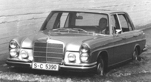Por otra parte, sabemos que esta gama se compone de dos series principales: la “nueva generación” nacida a comienzos del '68, y que va desde el 200 diesel hasta el 250, dotado de unas dimensiones más compactas y de suspensión trasera por ruedas tiradas, y la “gama alta”, compuesta por modelos recientemente perfeccionados de una serie más antigua, que comienza en el seis cilindros 280 S y culmina con el 300 SEL 6.3 objeto de esta prueba.