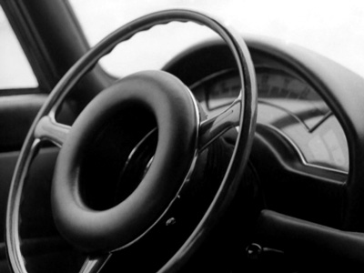 El movimiento de giro se transmite al ár bol de la dirección por medio de una pieza de acero de forma cónica de gran diámetro. Esta superficie cónica ha sido calculada de modo que pueda transmitir todo el esfuerzo torsional para el funcionamiento de la dirección, siendo al mismo tiempo fácilmente deformable en sentido axial y oblicuo. Esta falta de resistencia nos trae el que el volante con el choque cambie de dirección, dejan do de ser peligroso. La misma presión del conductor lanzado contra la rueda de dirección hace que ésta varíe sin que el impacto pueda tener características graves.