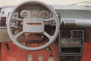 El éxito comercial alcanzado por estas pequeñas bombas desde que salieron al mercado está fuera de toda duda. En todos estos años, pocas han sido las modificaciones. Tan sólo el GT Turbo, hace año y medio, sufrió una ligera remodelación, en la cual se aumentó la potencia del motor en 5 CV (a base de trabajar en el encendido y en la presión de soplado del turbo) y se mejoraron las cotas del tren delantero a fin de obtener un mayor poder direccional. Ahora le toca el turno al Fiat Uno, en el cual se ha trabajado en la adopción de una nueva turbina para el turbo- compresor, un nuevo varillaje en la timonería del cambio de marchas y sobre todo en la incorporación del sistema de frenos antiskid. Más de uno se preguntará, ¿pero qué es eso del antiskid? Pues bien, se trata de un sistema de ABS, pero que sólo actúa en las ruedas delanteras; su eficacia, como veremos más adelante, resulta magnífica.