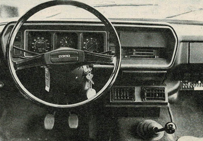 La visión del cuadro de mandos es buena. Este es de un diseño que aúna lo estético y lo funcional, resultando muy agradable. A la izquierda tiene el velocímetro con cuentakilómetros y totalizador parcial; en el centro, reloj, temperatura de agua y nivel del depósito de gasolina, con luz de reserva; a la derecha, cuentarrevoluciones con zona amarilla en 5.500 y zona roja en 6.000 r. p. m. Los mandos están dispuestos muy a mano: luces, intermitencias, freno, climatización, etcétera. Los pedales están situados racionalmente.