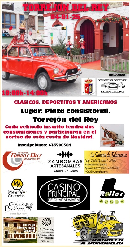 El 4 de enero, dentro de la programación de Navidad del ayuntamiento de Torrejón del Rey (Guadalajara), se celebrará una concentración de vehículos clásicos. El evento tendrá lugar de 10 a 14 horas en la Plaza consistorial de Torrejón del Rey.