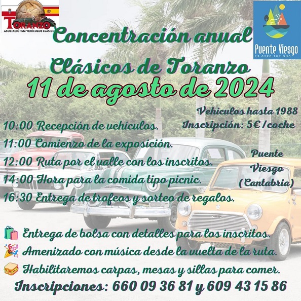 El 11 de agosto tendrá lugar la edición número 12 de la concentración anual Clásicos de Toranzo, que como en las dos ediciones anteriores se celebrará en Puente Viesgo, concretamente en la Vía Verde del Pas.