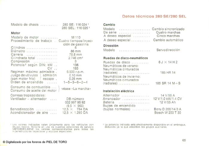 Manual de usuario del Mercedes 280 S/SE/SEL - 350 SE/SEL - 450 SE/SEL W116