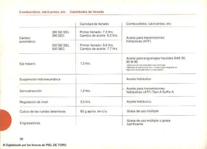 Manual de usuario del Mercedes 380 SE/SEL/SEC - 500 SE/SEL/SEC W126