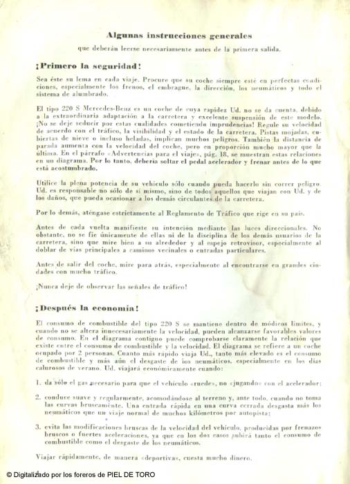 Manual de usuario del Mercedes 220 S - 219 PONTÓN W180