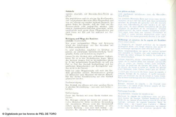 Manual de usuario del Mercedes 230 SL PAGODA W113