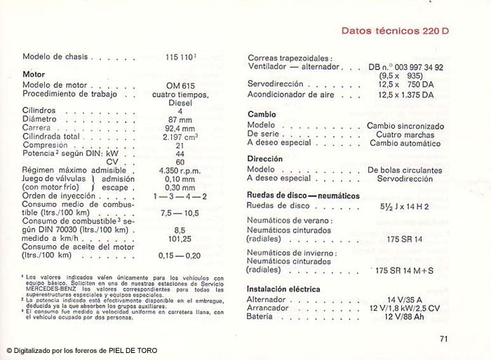 Manual de usuario del Mercedes 200 D - 220 D - 240 D - 240 D 3.0 W115