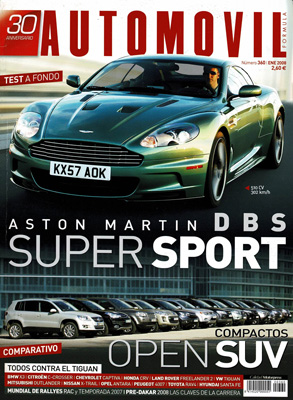 Prueba del Aston Martin DBS. Prueba del Aston Martin Rallye GT. Publireportaje: Saab BioPower. Gran Prueba Comparativa: BMW X3 2.0d/Citroën C-Crosser 2.2 HDI/Chevrolet Captiva 2.0 VCDI LTX/Honda CR-V 2.2 I-CTDI/Hyunday Santa Fe 2.2 CRDi/Land Rover Freelander 2 2.2 TD4 HSE/Mitsubishi Outlander 2.0 Kaiteki/Nissan X-Trail 2.0 dCi 173 CV/Opel Antara 2.0 CDTI/Peugeot 4007 2.2 HDI/Toyota RAV-4 2.2D-4D-177/Volkswagen Tiguan 2.0 TDI. 24 Horas de Barcelona.