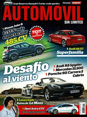 Prueba del Nissan Juke R. Muere el padre del Porsche 911. Leena Gade, la reina de Le Mans. Prueba Comparativa: Audi R8 Spyder/Mercedes SL500/Porsche 911 Carrera S Cabrio. El Subaru BRZ según Arturo de Andrés. Contactos: Audi S6/S7. Prueba del Opel Astra GTC 2.0 CDTI. 40 años de Renault 5. A la Costa Azul en un Rolls-Royce Phantom II.