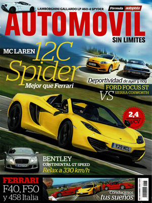 Prueba Comparativa: Ferrari F40/Ferrari F50/Ferrari 458 Italia. Contacto: McLaren 12C Spider, Audi R8, VW Golf 1.4 TSi ACT DSG 7, Lamborghini Gallardo LP560-4 Spyder, Bentley Continental GT Speed. Range Rover TDV8. Prueba Comparativa: Ford Focus ST/Ford Sierra RS Cosworth. Magazine: VW Polo WRC. Prueba: Skoda Citigo 1.0 MPI 75CV. Clásicos: Gran Premio Nuvolari.