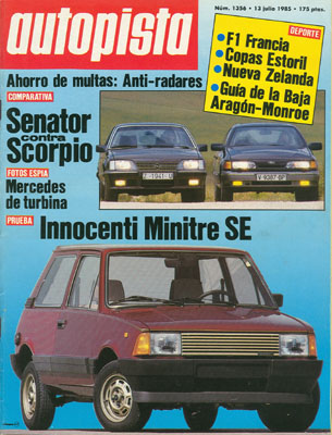 Comparativa entre Ford Scorpio Ghia 2.8i y Opel Senator CD 3.0i en versiones automaticas, Citroen BX Sport, prueba del Innocenti Minitre SE, deporte, consultorio entre otras.