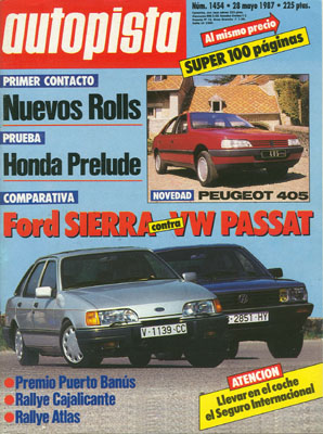 Comparativa: Ford Sierra 2.0i GL/Volkswagen Passat GL5 2.0. Presentación del Peugeot 405. Banco de Pruebas del Honda Prelude EX. II Premio Puerto Banús. Rallye Cajalicante. Rallye del Atlas.