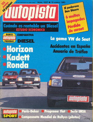 Prueba comparativa: Talbot Horizon GLD/Opel Kadett Diesel/Seat Ronda Diesel. Campeonato IMSA. Rallye París-Dakar. Las secciones habituales de Consultorio y lista de precios.