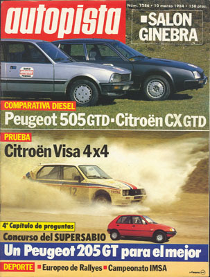Prueba Comparativa: Peugeot 505 GTD Turbo/Citroën CX TRD Turbo. Salón de Ginebra. Mascotas reales. Prueba del Renault 18 Break 4x4. Prueba del Citroën Visa 4x4. Gran Premio de Miami IMSA.