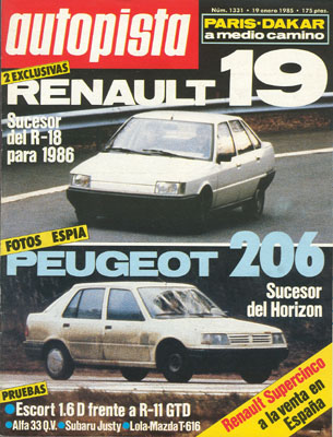 Fotos espía del Renault 21 y del Peugeot 309. Prueba Comparativa: Ford Escort 1.6 D Ghia/Renault 11 GTD. Prueba del Subaru Justy 1000 4WD SL. Banco de Pruebas del Alfa Romeo 33 Quadrifoglio Verde. Prueba del Lola-Mazda T-616 C-2. Rallycross. París-Dakar.